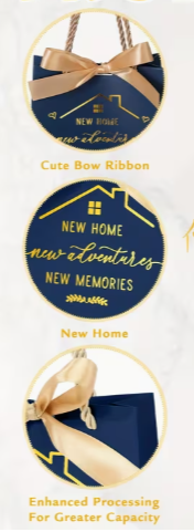 1 Small Housewarming Gift Bag with Golden Ribbon Bow & Sturdy Non-Paper Handle , Navy Blue. Perfect for a New Home Client, Real Estate Agent Gifts or Housewarming.